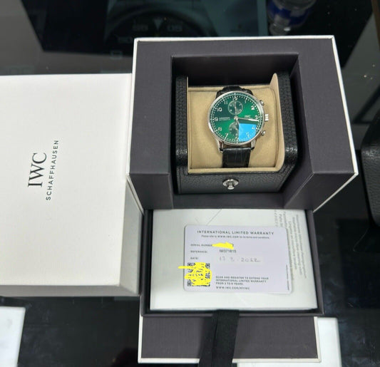 IWC Portugieser Chronograph. Green Dial IW371615 2022 Box Papers, Brand New