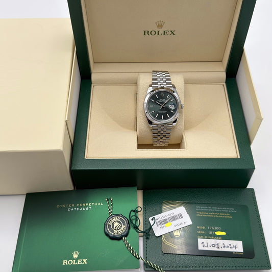 Rolex Datejust 41 Mint Green Dial Jubilee. 126300. 2024 Full Set Immaculate