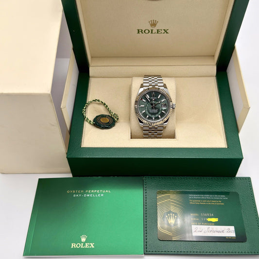 Rolex Sky Dweller Mint Green Jubilee Bracelet. 336934. 2023 Full Set Box Papers