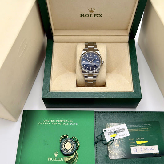Rolex Oyster Perpetual 36 126000. Navy Blue Dial. 2021 Full Set Immaculate 36mm