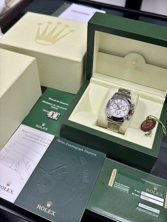 Rolex Cosmograph Daytona 116520 White Dial. 2008 Full Set Box Papers M Serial