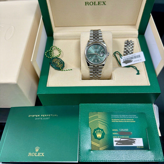 Rolex Datejust 36 Mint Green 126200. Smooth Bezel. 2023 Full Set Box & Papers
